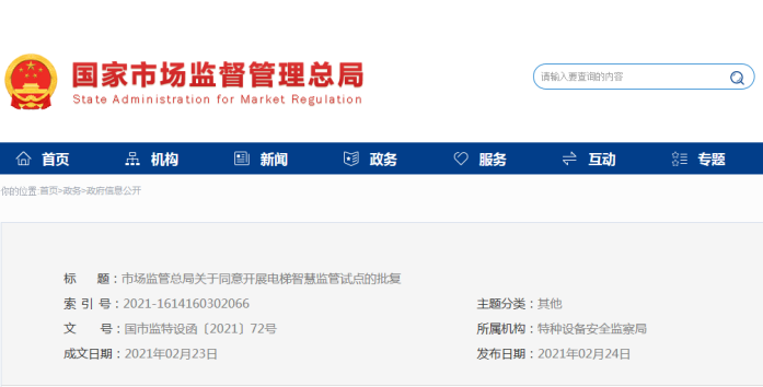 浙江新聞客戶端 |記者 李睿 通訊員 趙文瓊 近日,市場(chǎng)監(jiān)管總局發(fā)文《市場(chǎng)監(jiān)管總局關(guān)于同意開(kāi)展電梯智慧監(jiān)管試點(diǎn)的批復(fù)》,在上海市、南京市、杭州市、廣州市開(kāi)展首批電梯智慧監(jiān)管試點(diǎn)。 近年來(lái),杭州加快打造