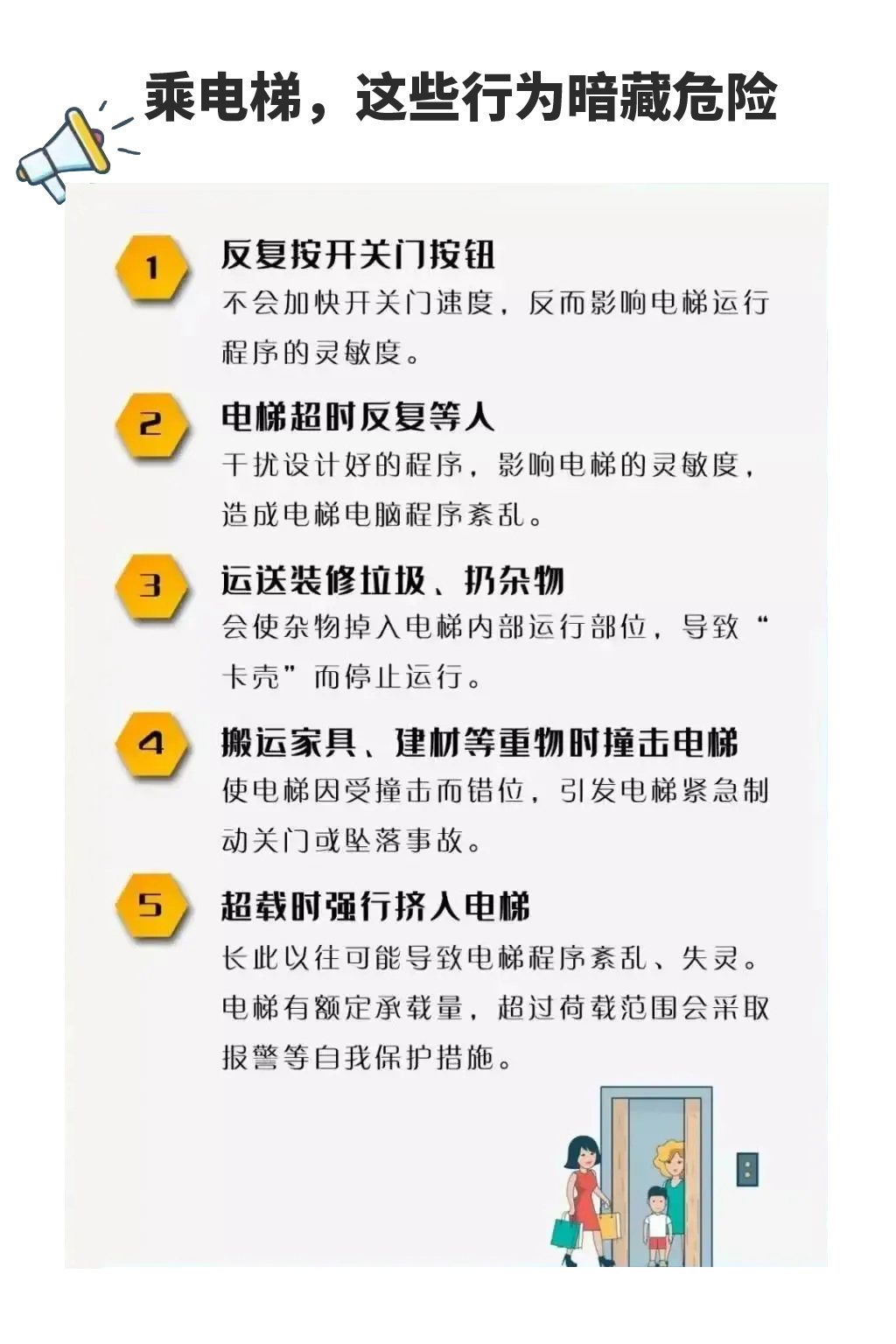 我國(guó)現(xiàn)有運(yùn)行電梯近800萬(wàn)臺(tái)電梯,每一天都與數(shù)億人打交道,在如此大體量下,一年十幾起甚至幾十起電梯事故的量似乎不算多,可一旦發(fā)生在個(gè)體的身上,就意味著對(duì)其人身安全直接構(gòu)成威脅。為認(rèn)真貫徹落實(shí)習(xí)近平總書(shū)記關(guān)于安全生產(chǎn)重要論述精神,切實(shí)提升電梯安全應(yīng)急處置水平和居民安全乘梯意識(shí)。為此,小編找到一份內(nèi)容全面,由中華人民共和國(guó)應(yīng)急管理部制作的《安全乘梯小貼士》供大家學(xué)習(xí)使用。