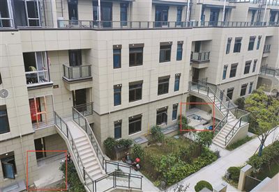 疊墅門口預(yù)留電梯井的位置。(傅鐘中 攝)
