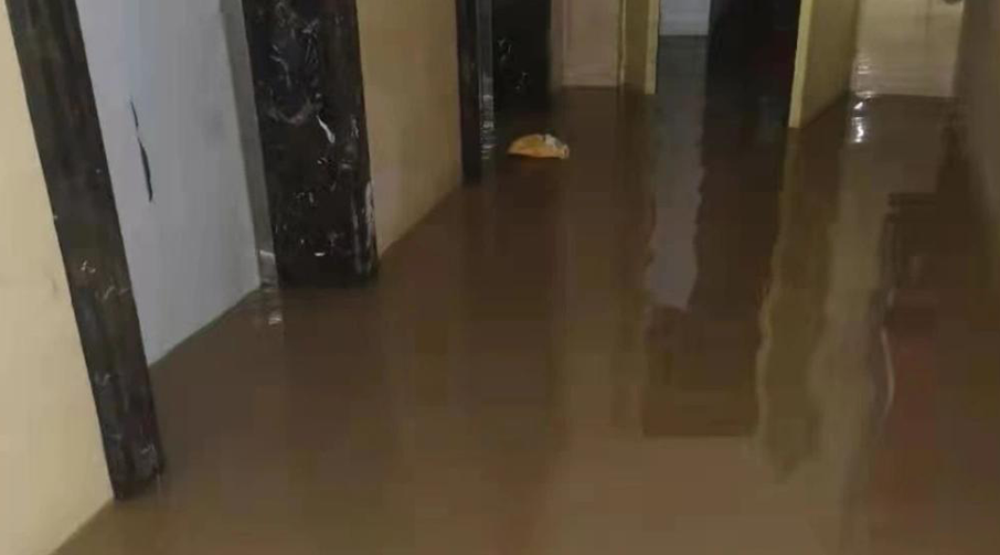 2、機(jī)房地面淹水,但淹水程度較淺,沒有超過電動(dòng)機(jī)和配電柜控制柜的基礎(chǔ)。