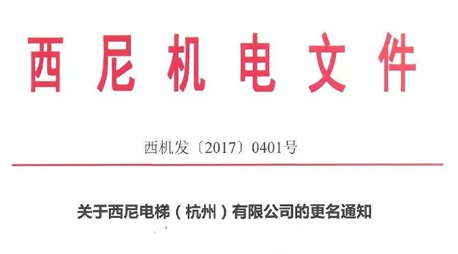 關(guān)于“西尼電梯”正式更名為“西尼機電”的文件通知