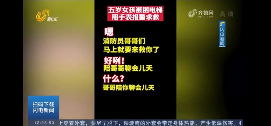 經(jīng)過(guò)聊天得知,小女孩獨(dú)自回家時(shí)乘坐的電梯突然出現(xiàn)故障。多次操作無(wú)果,想起在學(xué)校學(xué)習(xí)的消防知識(shí),便用電話手表報(bào)警求助。