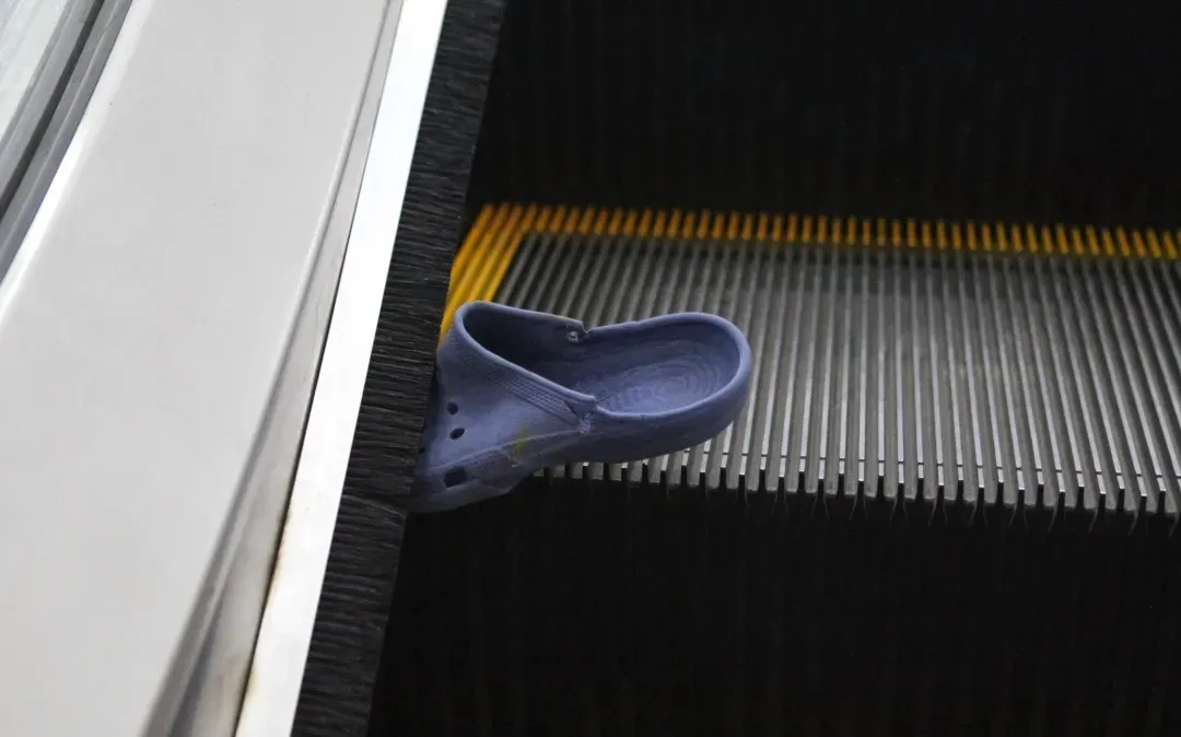 近年來發(fā)生多起兒童的腳被卷進了梯級與圍裙板間隙,造成擠壓傷害的事故。尤其是當(dāng)兒童穿著軟質(zhì)鞋子(如洞洞鞋)時發(fā)生此類事故的概率更大。