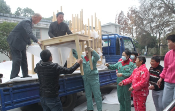 “Come here, come …” On December 14, when the company’s donated materials opened into the entrance of the canteen building of the orphanage, many children were already fenced in. After many years of use, some are unstable, some are missing, and some are uneven. The company attaches great importance to this decision and made 130 stools and 30 tables for the children in the orphanage.