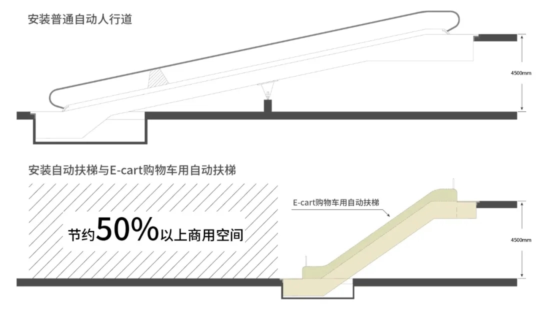 E-cart購(gòu)物車用自動(dòng)扶梯優(yōu)勢(shì):